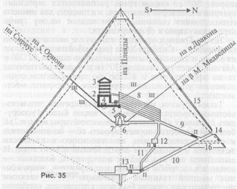 О «нацеленности» пирамиды на некоторые небесные светила свидетельствует и ряд деталей её внутреннего строения, к рассмотрению которого мы сейчас и приступаем.