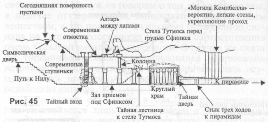 руководителей организации розенкрейцеров опубликовал план и разрез части плато Гиза между Сфинксом и пирамидами16. По его словам, эти документы, которыми почти 200 лет владели розенкрейцеры, были вывезены из Египта во время наполеоновской кампании. Трудно, конечно, оценивать достоверность этих материалов, ибо организация розенкрейцеров тайное мистическое,