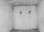 Вторая особенность конструкции Великой пирамиды — наличие «вентиляционных шахт». Они располагаются попарно: две отходят от камеры царя и две --от камеры царицы. Каждая из них проходит в теле пирамиды практически перпендикулярно к поверхности боковых граней. Если мысленно продолжить эти каналы вниз, то они сходятся: верхняя пара — под саркофагом в камере царя, а нижняя — под нишей в камере царицы. А теперь посмотрим на нижнюю часть рис. 35.