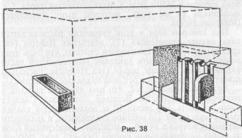 От верхнего конца большой галереи в южном направлении ответвляется горизонтальный проход, по которому через 1 м можно попасть в т. н. предкамеру (5). Это помещение высотой 3,5 м, западная и восточная стены которого сложены из плит полированного красного гранита (рис. 38). На гранитных стенах высечены четыре пары расположенных друг против друга