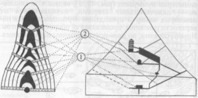 Рис. 42. Сравнение строения раковины нуммулита и Великой пирамиды: