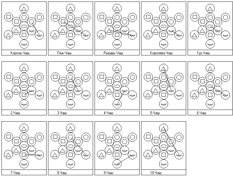 сразу бросается в глаза одинаковое количество линий и карт малого аркана
